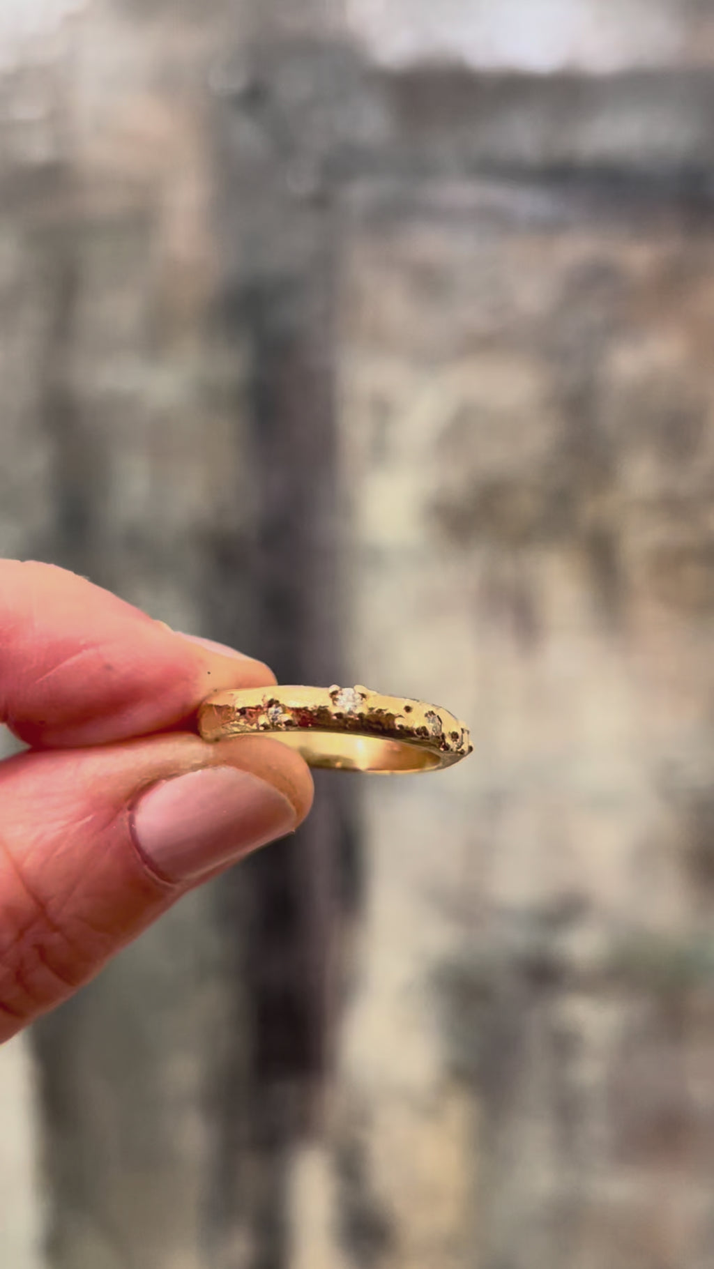 The west coast rain wedding band features ocean-inspired bubbles and playfully arranged flush-set diamonds make this band unique.